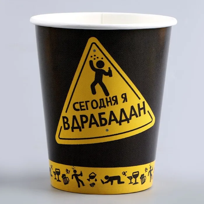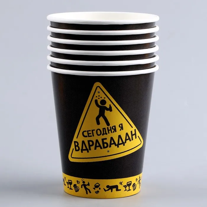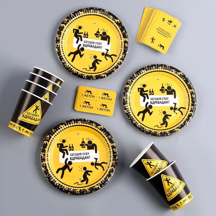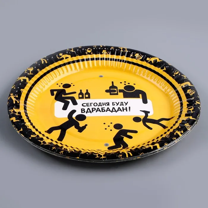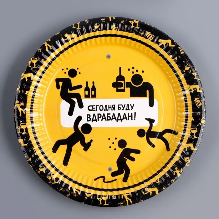 Набор бумажной посуды одноразовый Сегодня буду вдрабадан»: 6 тарелок, 6 стаканов — Характеристики