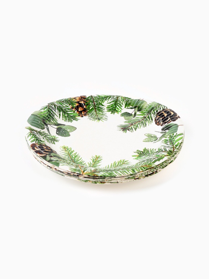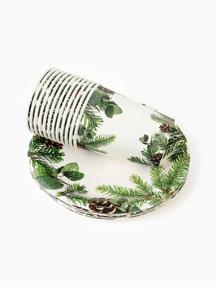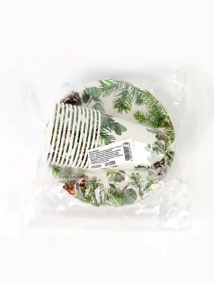 Набор бумажной посуды «С Новым годом», еловые ветки, 12 персон — Характеристики