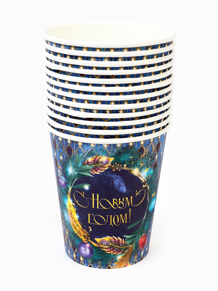 Набор бумажной посуды «С Новым годом» праздничный венок, 12 персон