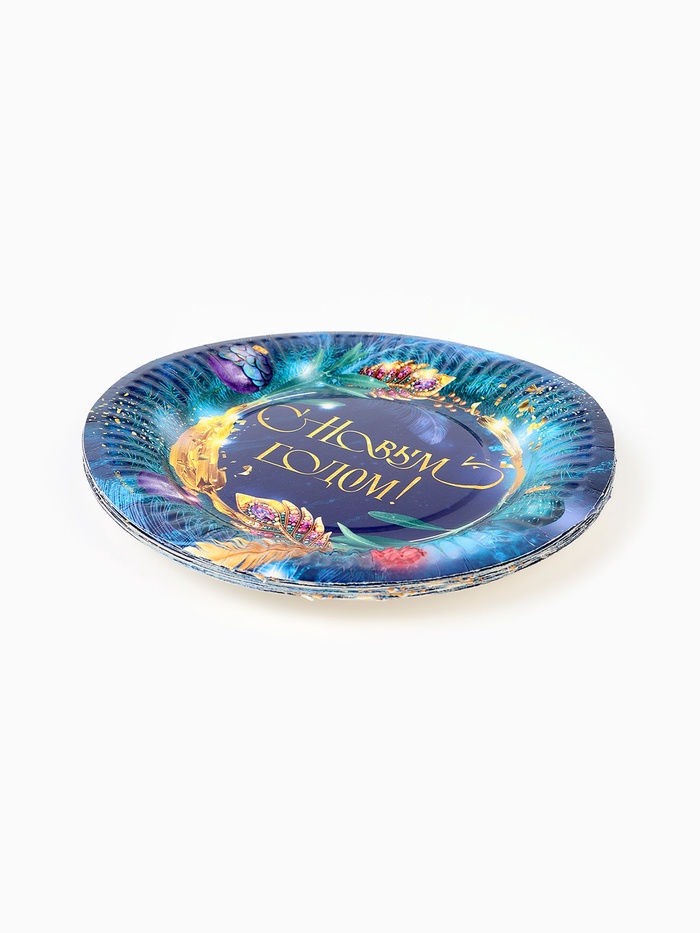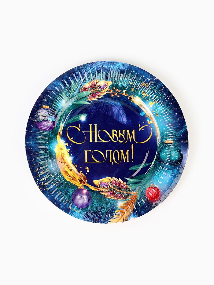 Набор бумажной посуды «С Новым годом» праздничный венок, 12 персон — Характеристики