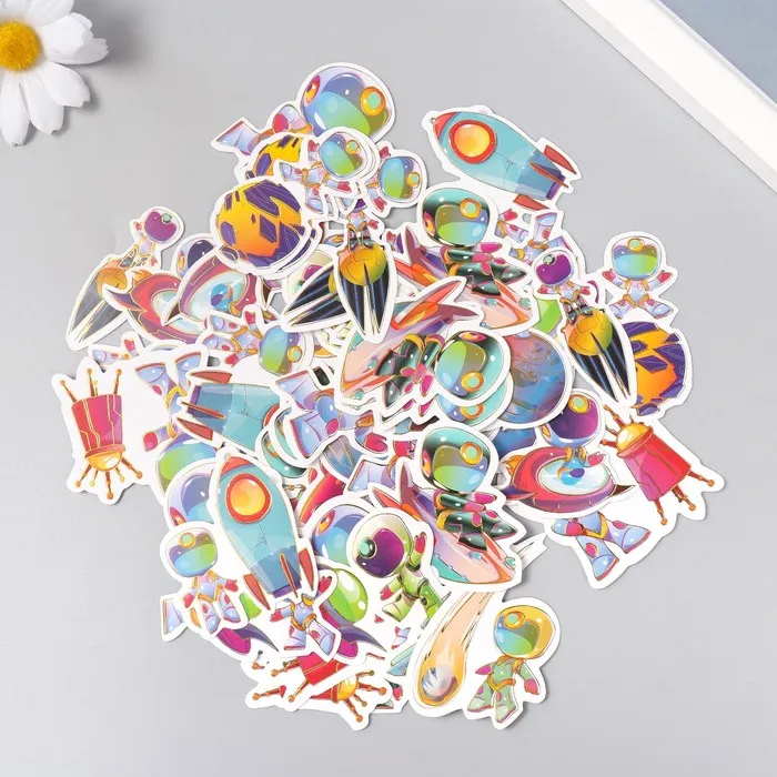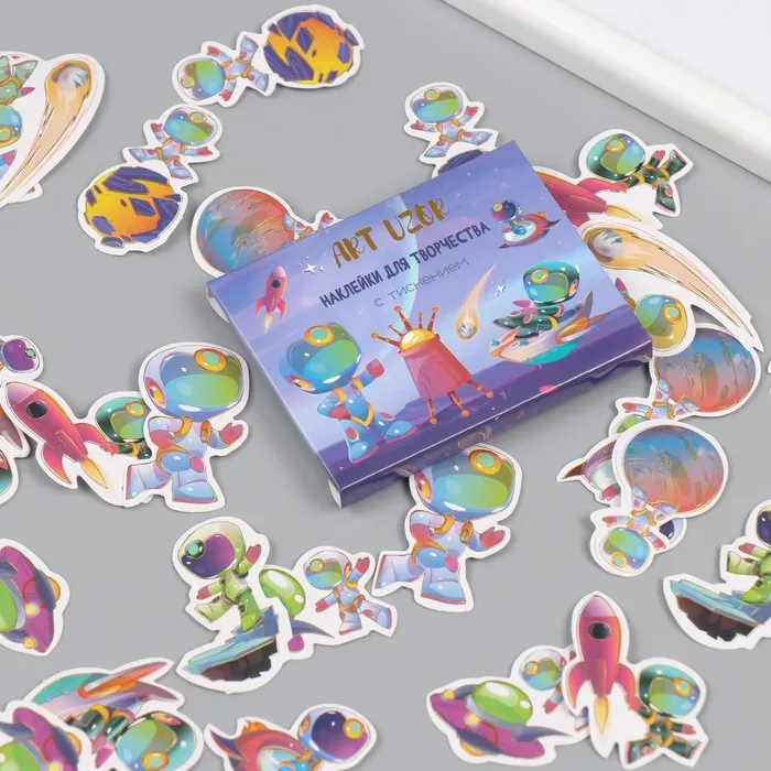 Набор бумажных наклеек для декора «Арт Узор. Приключения космонавтов», 48 шт., тиснение серебро, 9×7×0.8 см — Характеристики