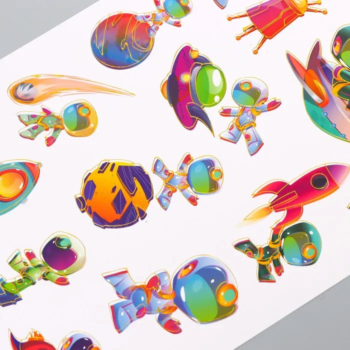 Набор бумажных наклеек для декора «Космонавты», 2 листа, 20×15 см — Характеристики
