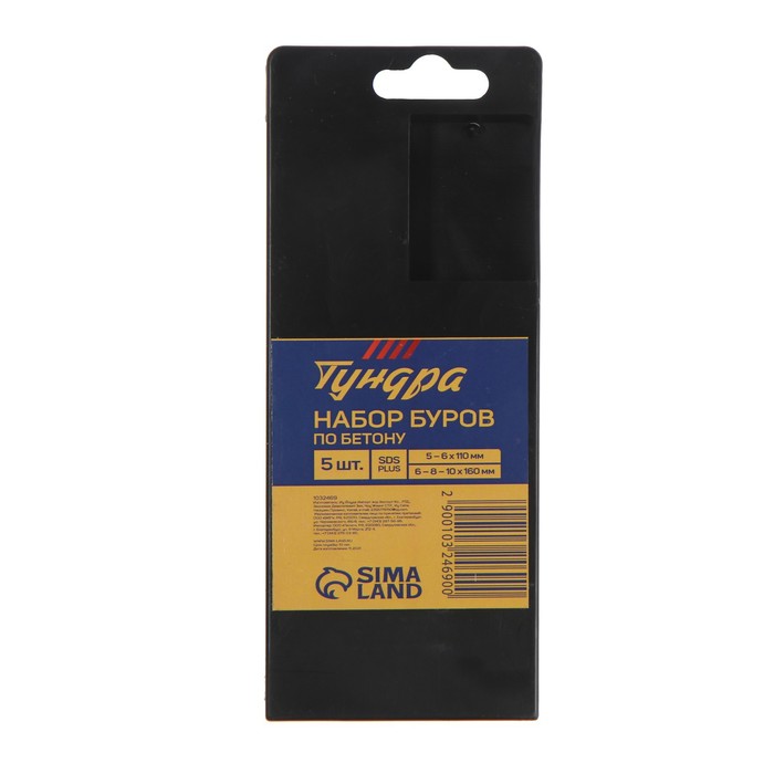 Набор буров по бетону ТУНДРА, SDS-plus, 5-6×110 мм, 6-8-10×160 мм, 5 шт. — Характеристики