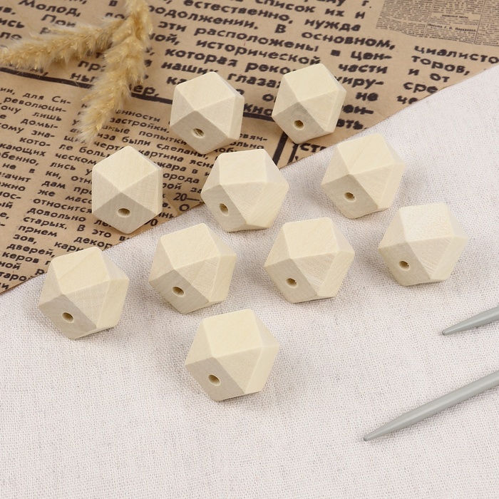 Деревянные бусины-многогранники добавят текстуру и объём вашим изделиям макраме. Каждая деталь с 12 гранями создаёт интересную игру света в подвесках, браслетах или декоративных панно.