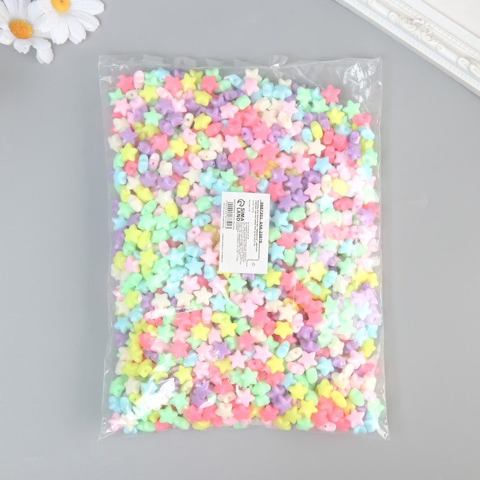 Набор бусин для плетения, декора пластик «Звёздочки», цветные нежных цветов, 500 г, 1×1×0.6 см — Характеристики