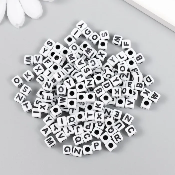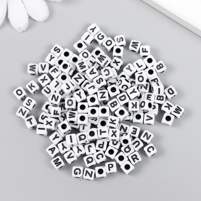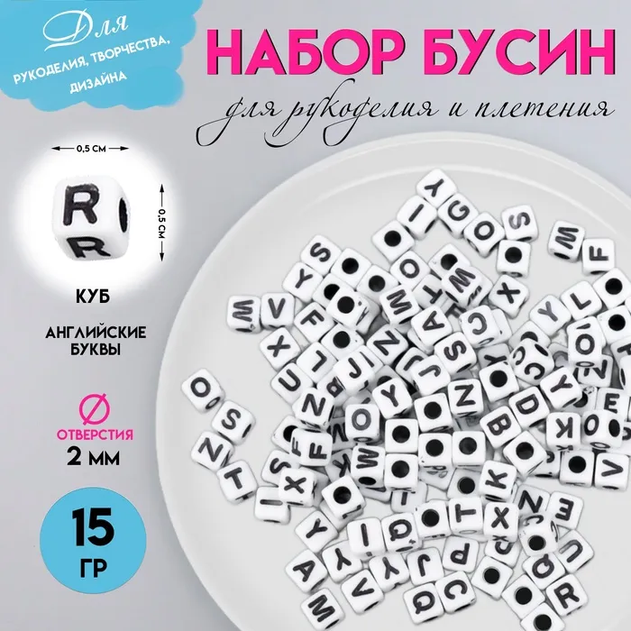 Набор бусин для рукоделия и плетения «Арт Узор. Английские буквы на кубике», пластик, белые, 15 г, 0.5×0.5×0.5 см — Характеристики
