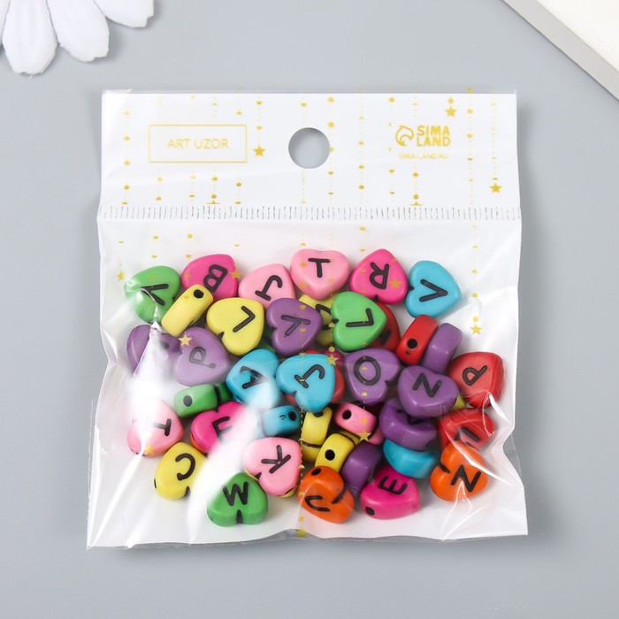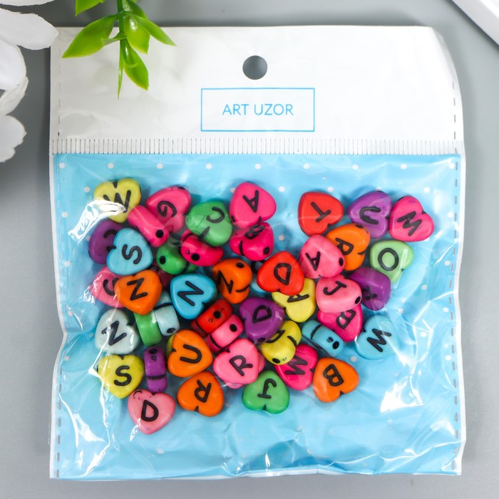 Набор бусин для рукоделия и плетения «Арт Узор. Яркие сердца с английскими буквами», 20 г, пластик, 1×1 см — Характеристики
