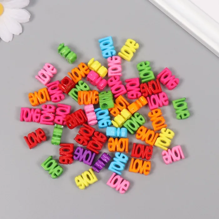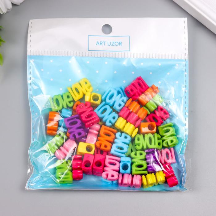 Набор бусин для рукоделия и плетения «Арт Узор. Надпись Love», 50 шт., цветные, пластик, 1×1.7 см — Характеристики