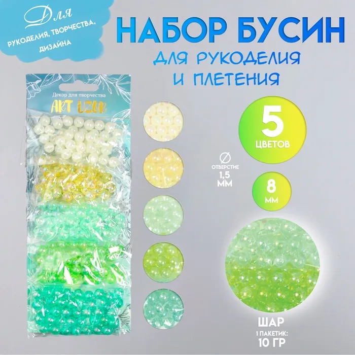 Набор бусин для рукоделия и плетения «Арт Узор. Перламутр. Летняя поляна», пластик, 5 цветов × 10 г, d=0.8 см — Характеристики