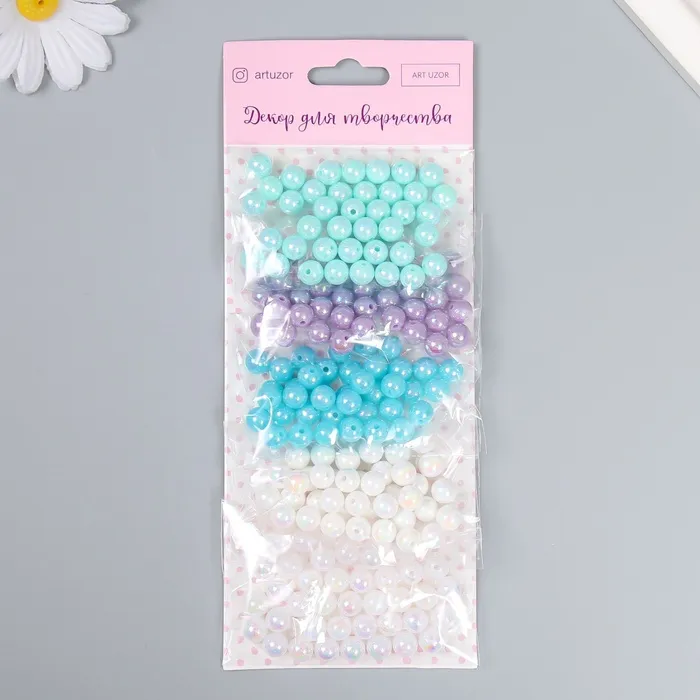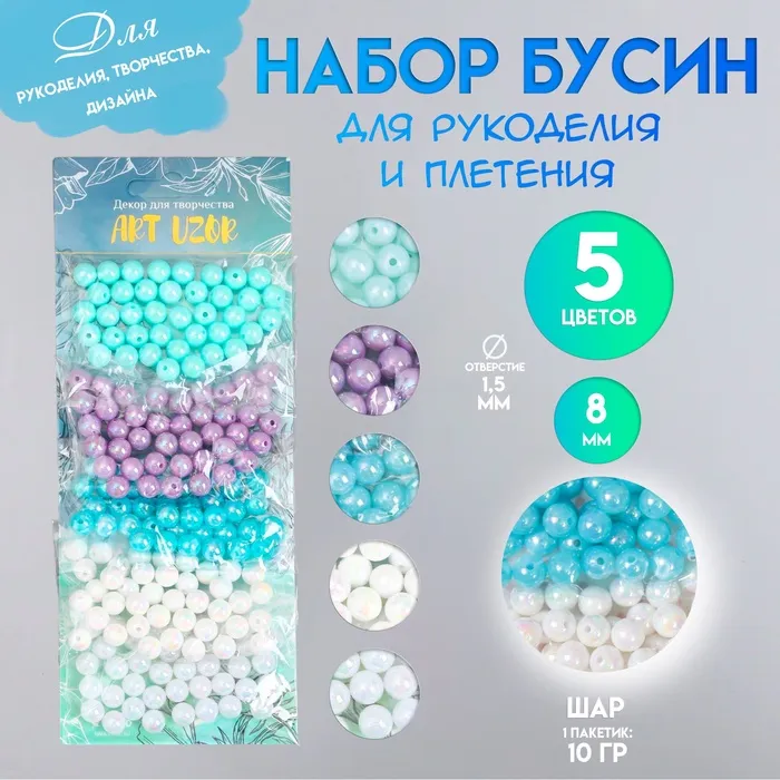 Набор бусин для рукоделия и плетения «Арт Узор. Перламутр. Морская волна», пластик, 5 цветов × 10 г, d=0.8 см — Характеристики