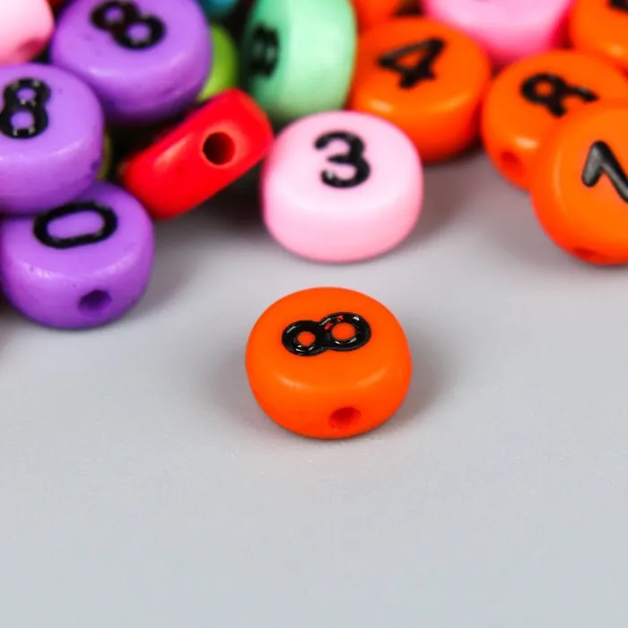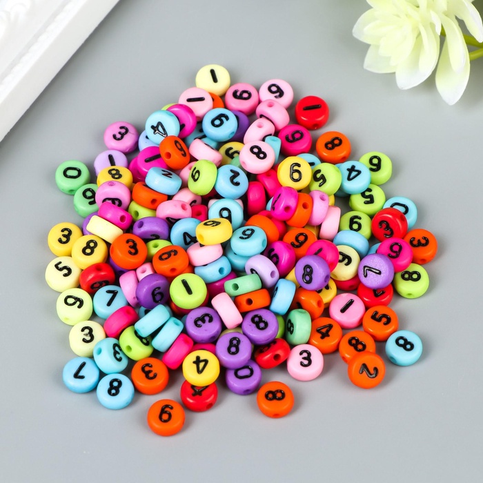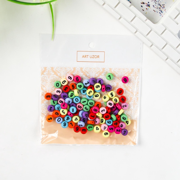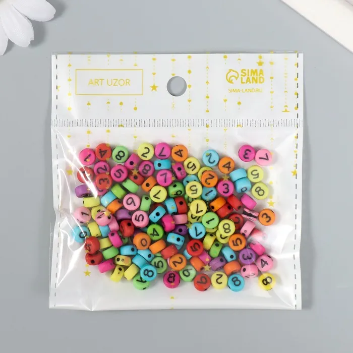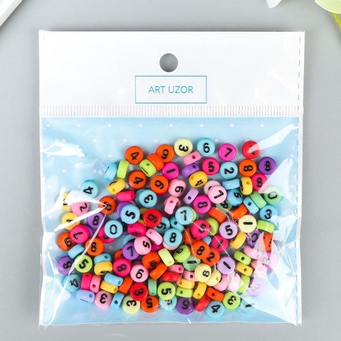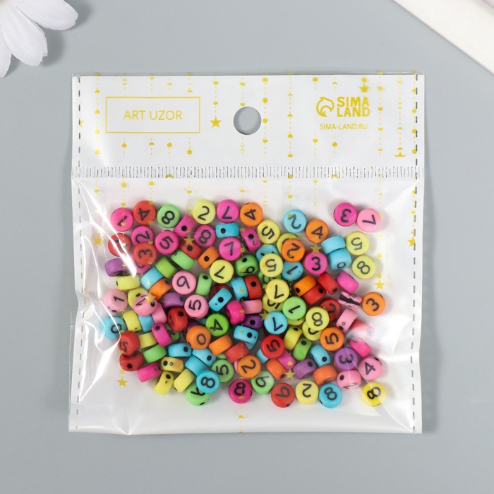 Набор бусин для рукоделия и плетения «Арт Узор. Разноцветные цифры», пластик, 20 г, 0.7×0.7 см — Характеристики