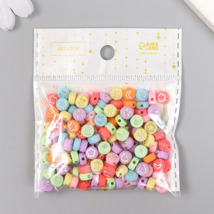 Набор бусин для рукоделия и плетения «Арт Узор. Сердечки и звёзды», 20 г, пластик, цветные, 0.4×0.7×0.7 см — Характеристики