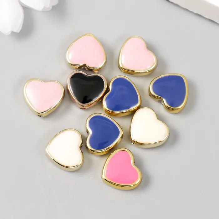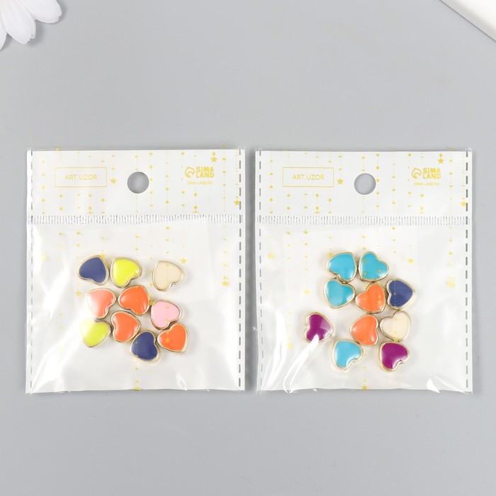 Набор бусин для рукоделия и плетения «Арт Узор. Сердечки, яркий глянец», 10 шт., пластик, 1.2×1.2 см, МИКС — Характеристики