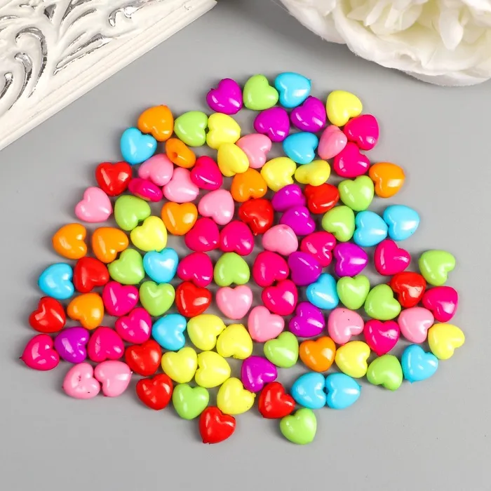 Набор бусин для рукоделия и плетения «Арт Узор. Сердечко пузатое», цветные, 100 шт. 1×1.1 см — Характеристики