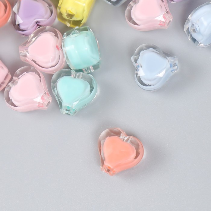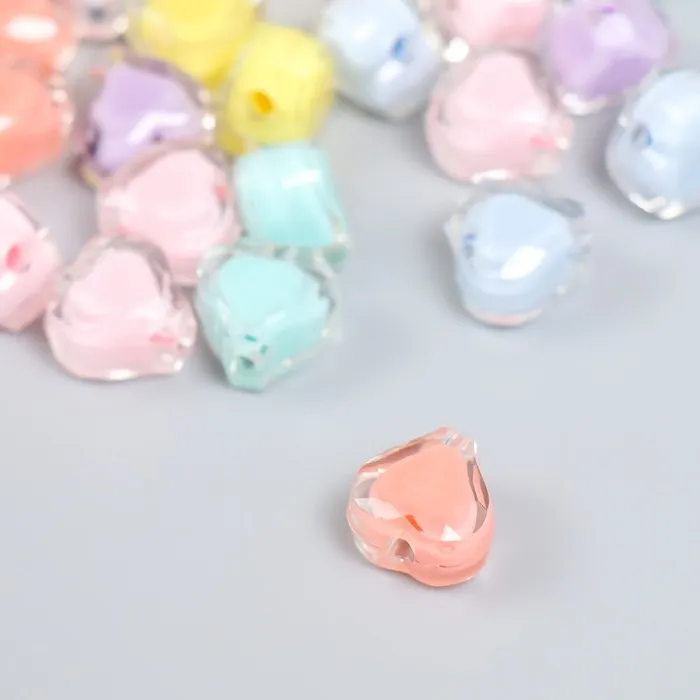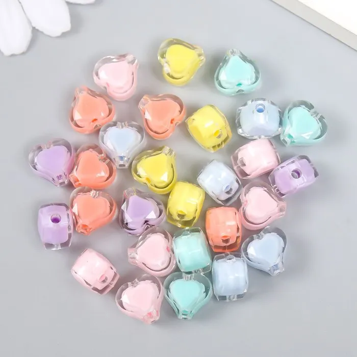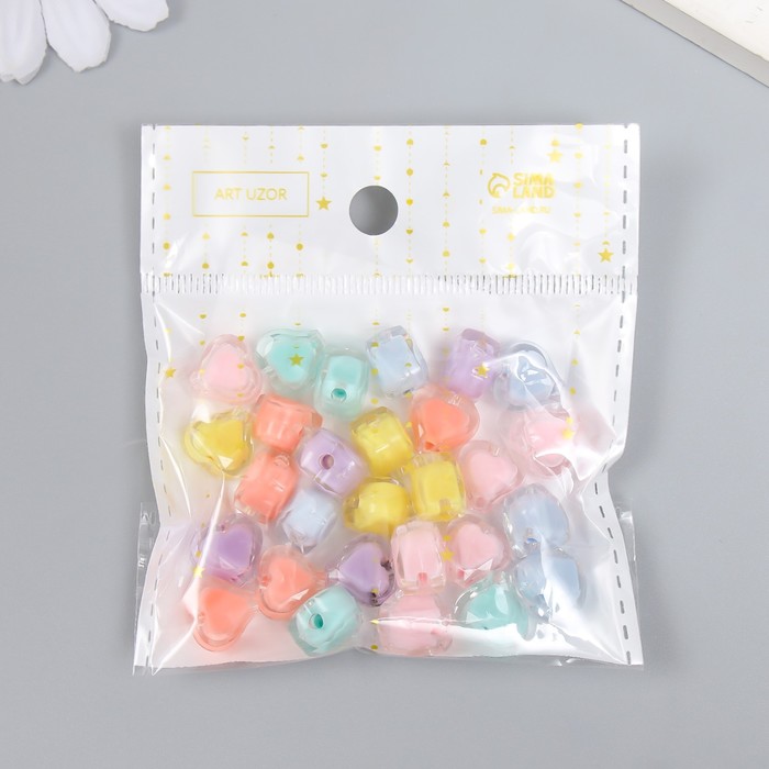 Набор бусин для рукоделия и плетения «Арт Узор. Сердечко с цветной серединкой», 20 г, пластик, глянец, 1.2×1.2×0.8 см, МИКС — Характеристики