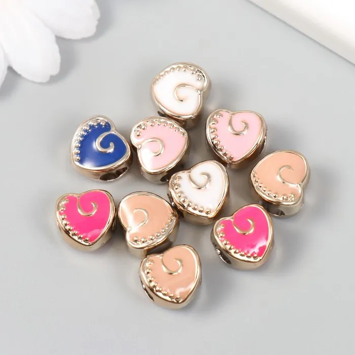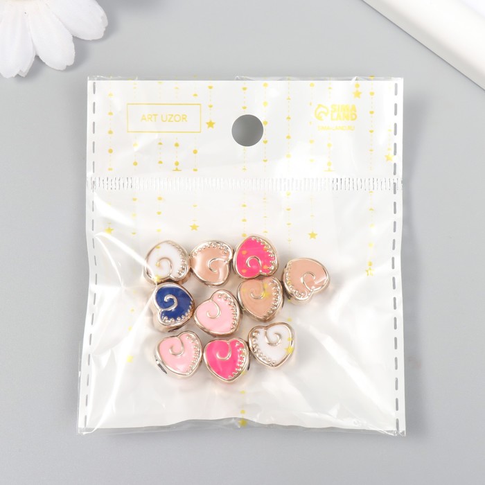 Набор бусин для рукоделия и плетения «Арт Узор. Сердечко с завитком», 10 шт., пластик, 1.1×0.8×1 см, МИКС — Характеристики