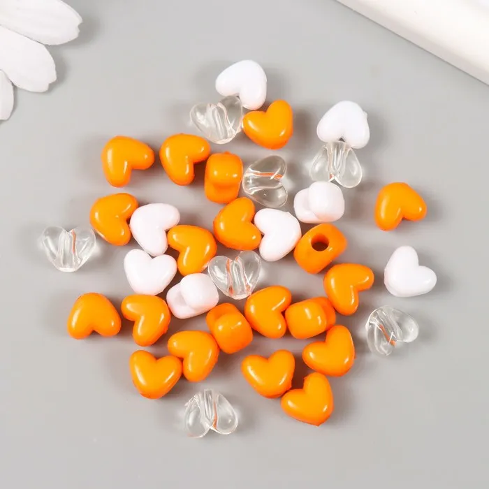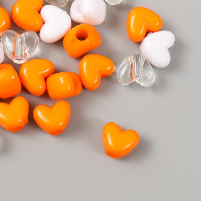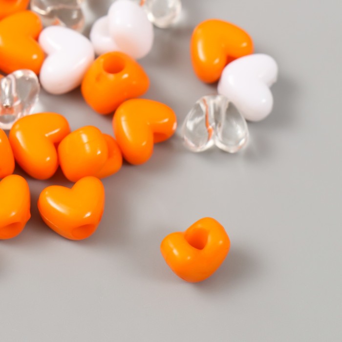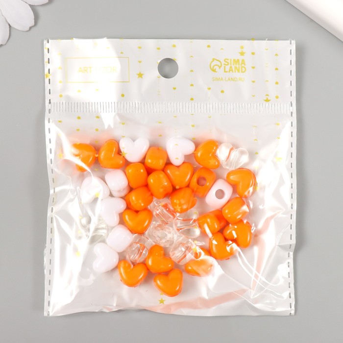 Набор бусин для рукоделия и плетения «Арт Узор. Сердце. Оранжевый, белый, прозрачный», 20 г, пластик, 1.2×0.9×0.8 см — Характеристики