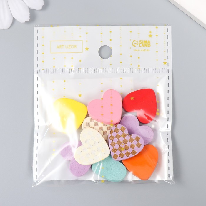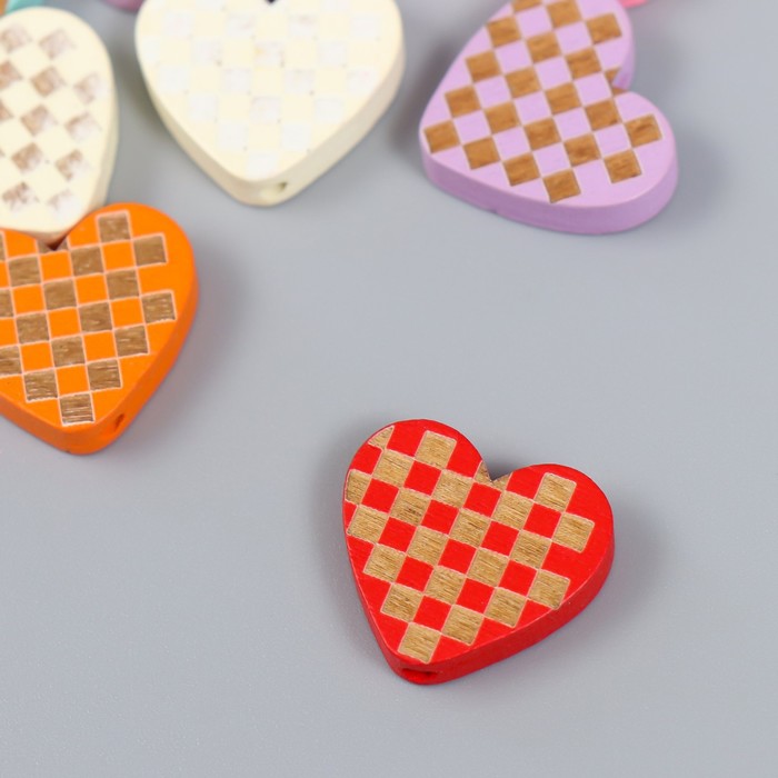 Набор бусин для творчества «Арт Узор. Сердце в клеточку», 10 шт., дерево, 2×2×0.5 см — Характеристики