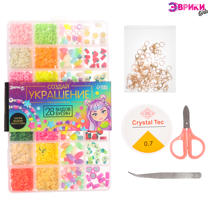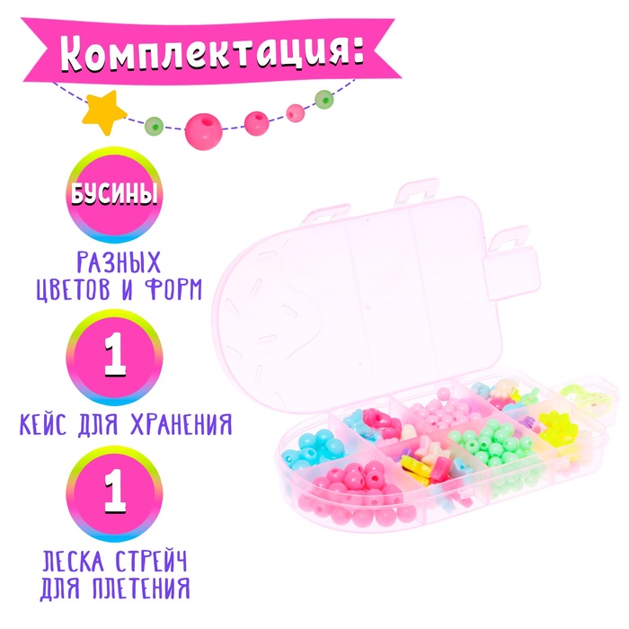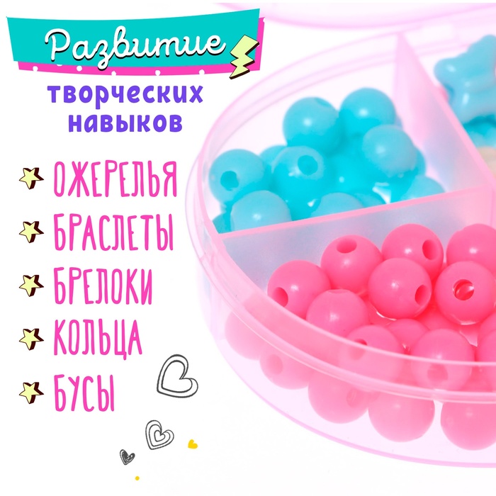 В кейсе есть всё необходимое для творчества: разноцветные бусины, из которых можно делать аксессуары в разных стилях.