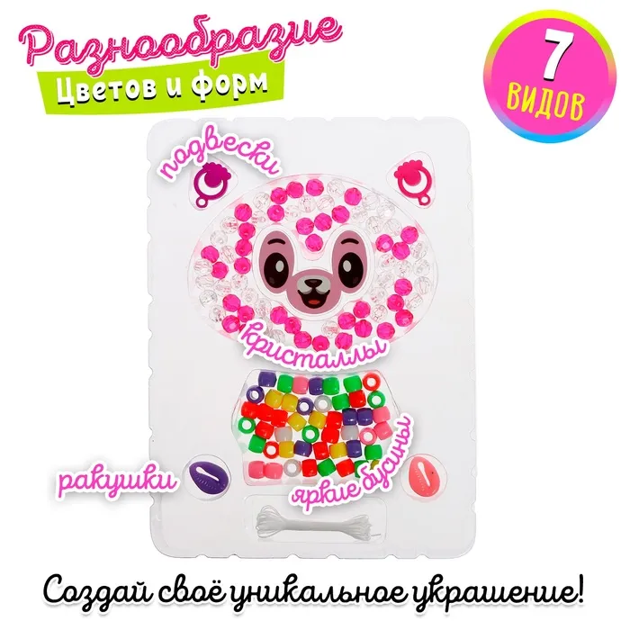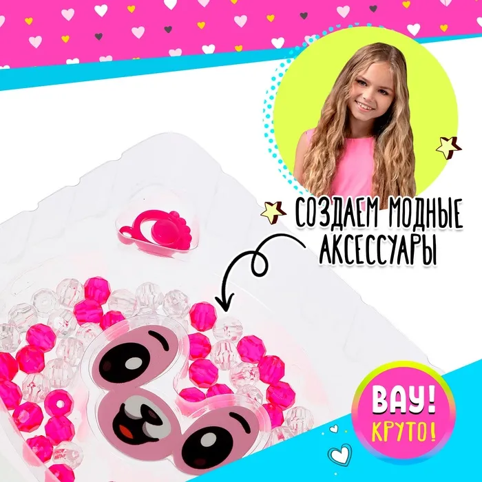 В наборе есть всё необходимое для творчества: разноцветные бусины, из которых можно делать аксессуары в разных стилях.