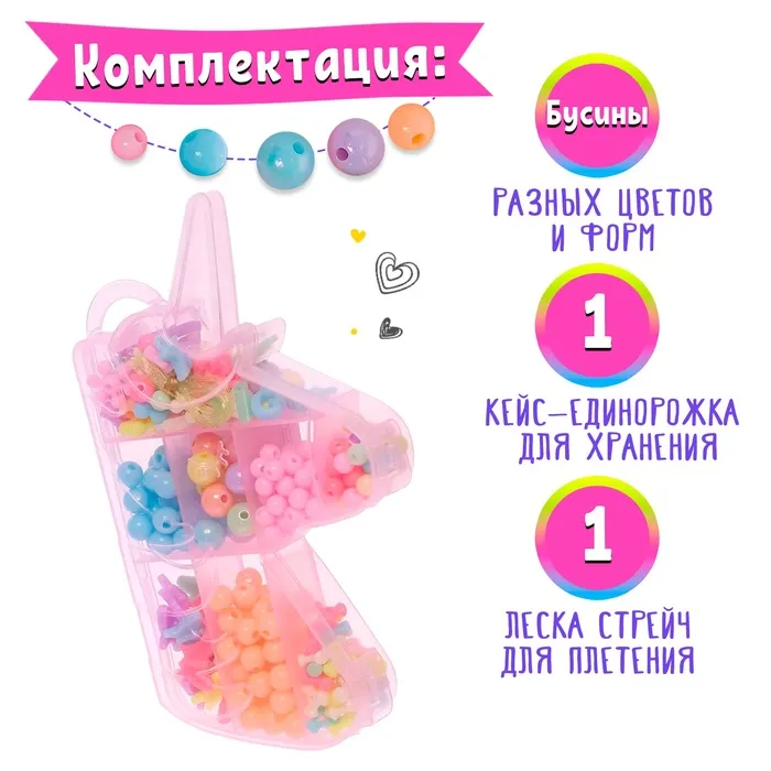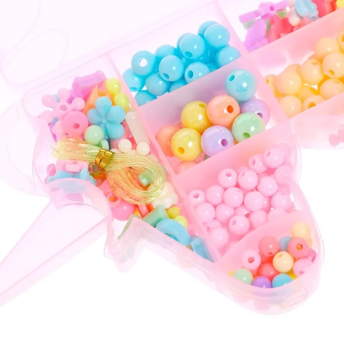 В кейсе есть всё необходимое для творчества: разноцветные бусины, из которых можно делать аксессуары в разных стилях.