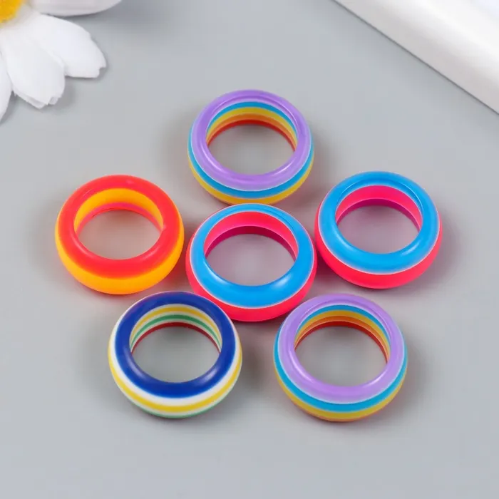 Набор бусин для творчества пластик «Радужное кольцо», набор 6 шт., 1×2.4×2.4 см