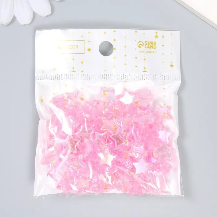 Набор бусин для творчества пластик "Звезда. Ярко-розовый перламутр" н-р 20 гр 1,1х1,1х0,4 см 92919 — Характеристики