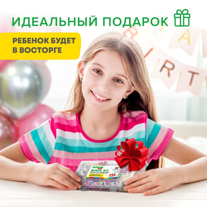 Набор бусин для творчества, рукоделия и создания украшений, 450 бусин, 24 вида.
