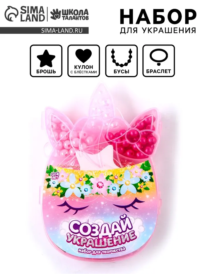 Набор бусин для украшения «Единорожка», с леской, с цепочкой, с декоративными элементами, 4+ — Характеристики