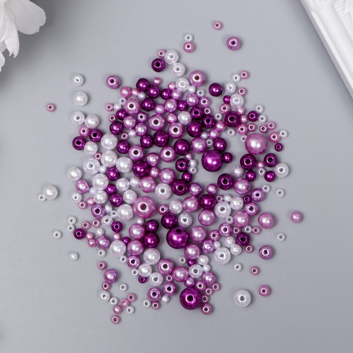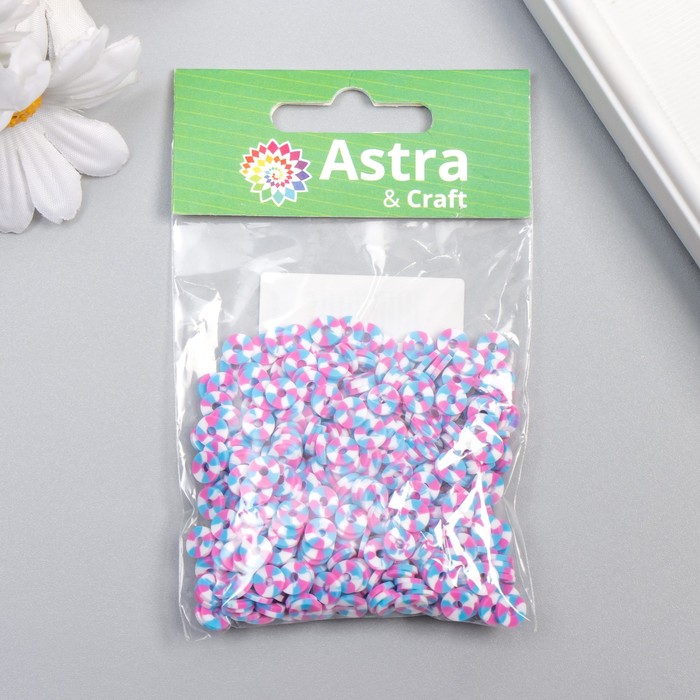 Набор бусин из полимерной глины "Астра" 6 мм, 20 гр, малиновый, белый, пестрый голубой — Характеристики