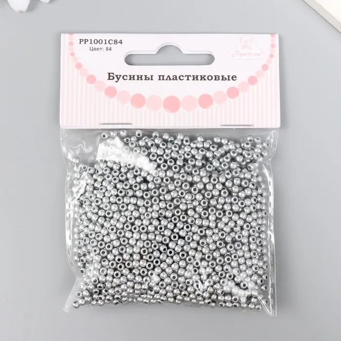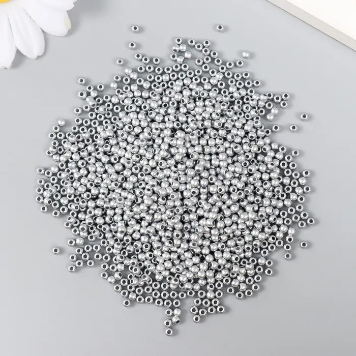 Набор бусин "Рукоделие" пластик, диаметр 3 мм, 25 гр, серебряный