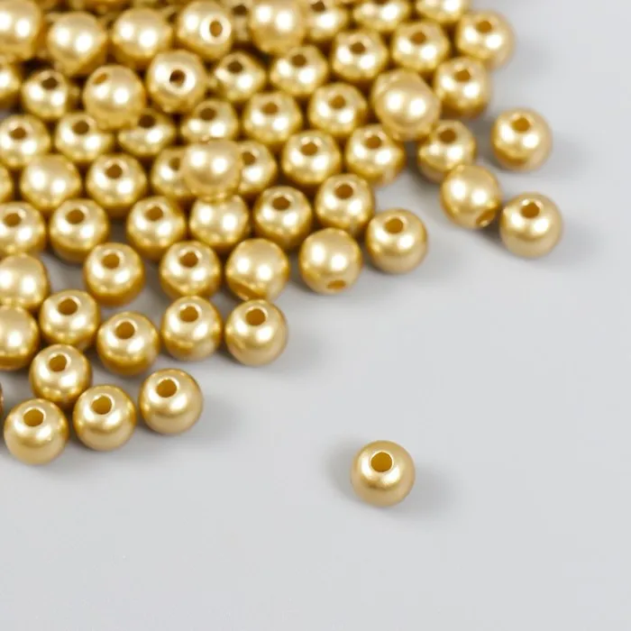 Набор бусин "Рукоделие" пластик, диаметр 6 мм, 25 гр, золотой