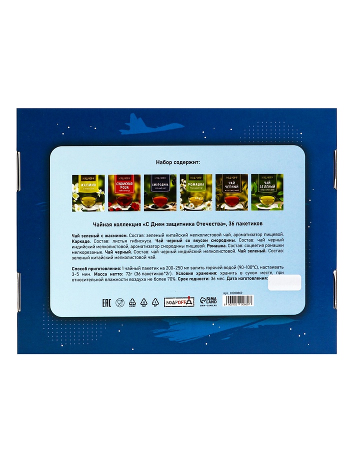 Чайная коллекция "С Днем защитника Отечества" — это уникальный набор, созданный для того, чтобы отметить важный праздник и подарить моменты уюта и тепла. В упаковке содержится 36 пакетиков качественного чая, каждый из которых предлагает разнообразие вкусов и ароматов, способных порадовать даже самых взыскательных ценителей.