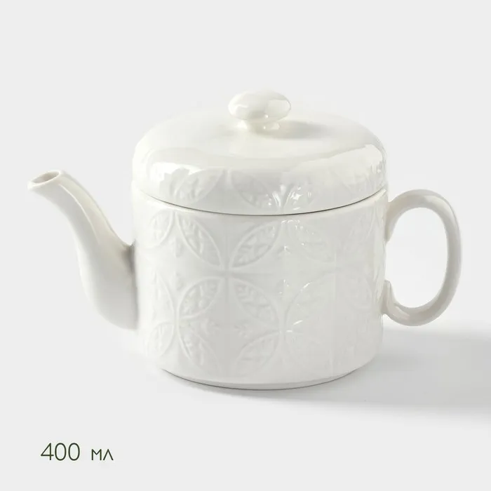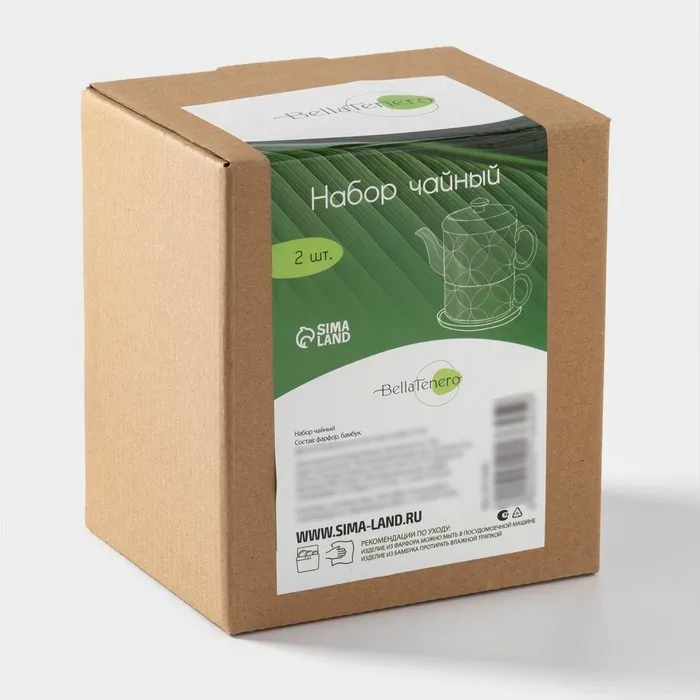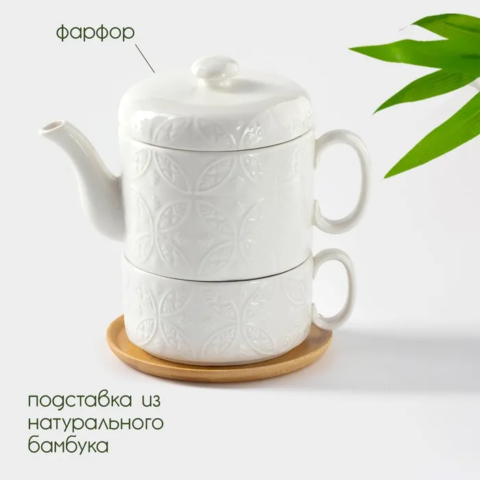 Набор чайный BellaTenero «Орнамент», 3 предмета: чайник 400 мл, кружка 280 мл, фарфор, бамбуковая подставка, белый — Характеристики