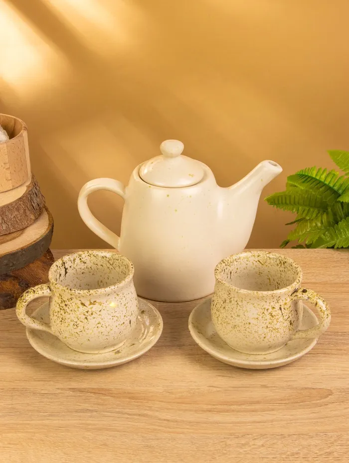 Набор чайный, чайник, 2 кружки, 27×26×16 см, керамика, молочный — Характеристики