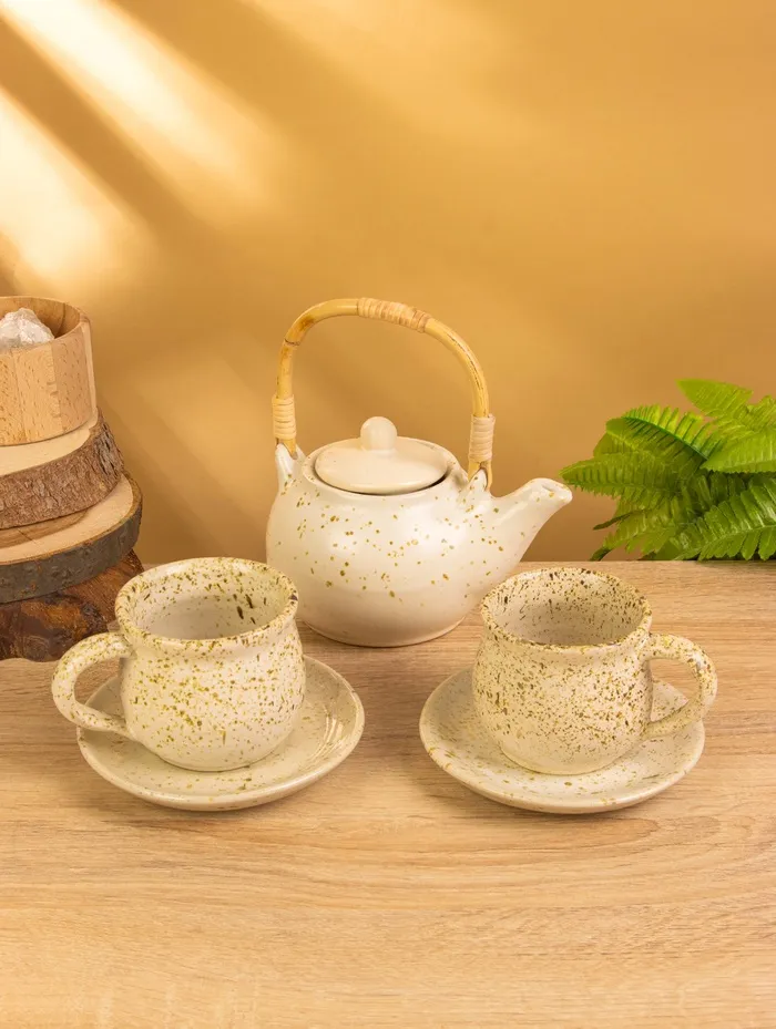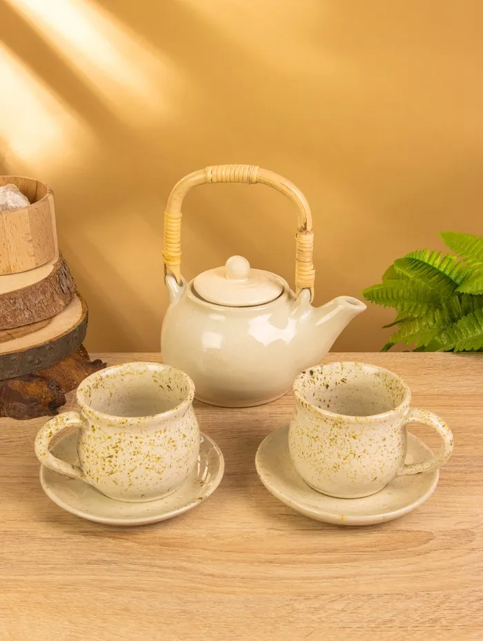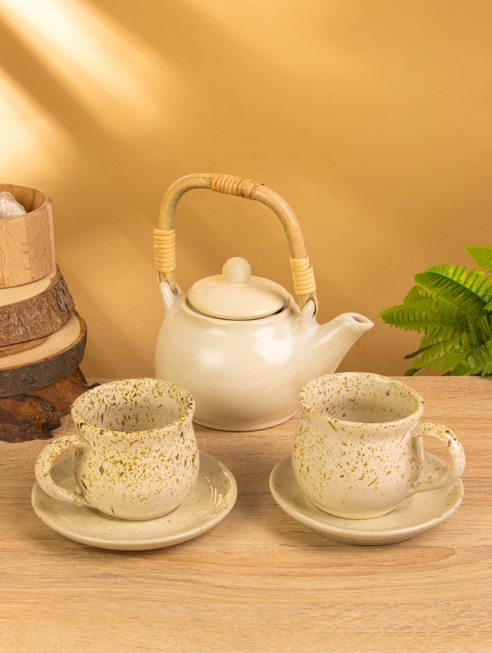 Набор чайный «Камень», чайник, 2 кружки, 27×24×16 см, керамика, бежевый в крошку, МИКС — Характеристики