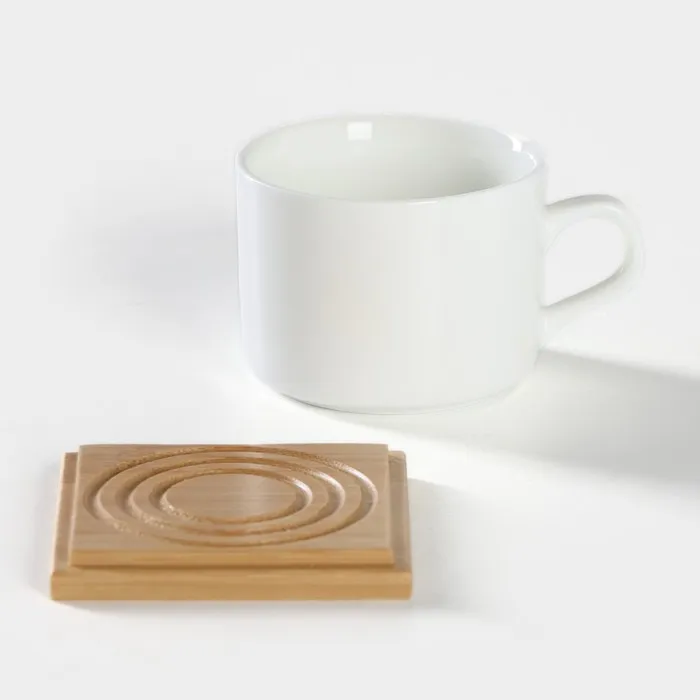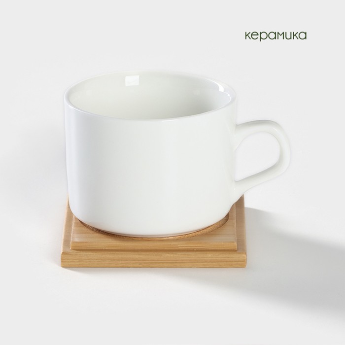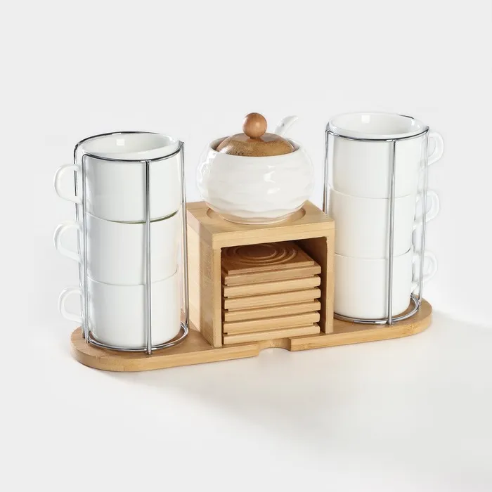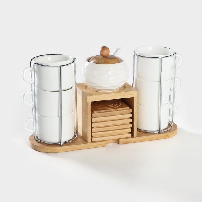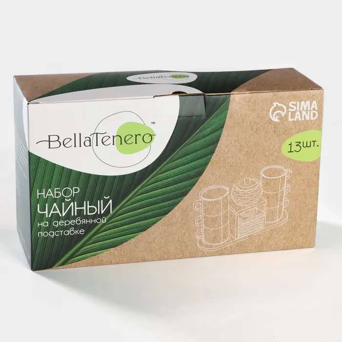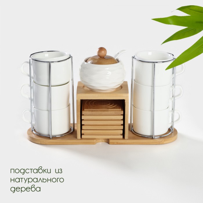 Набор чайный керамический на деревянной подставке BellaTenero, 13 предметов: 6 чашек 150 мл, сахарница с ложкой 200 мл, 6 подставок, белый — Характеристики