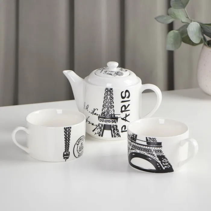Набор чайный керамический «Страны», 3 предмета: чайник 400 мл, 2 кружки 230 мл, рисунок МИКС — Характеристики