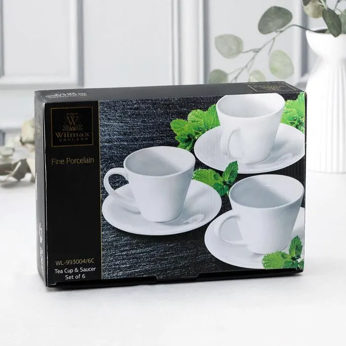 Набор чайный на 6 персон Wilmax, 12 предметов: 6 чашек 180 мл, 6 блюдец d=14 см, фарфор, белый — Характеристики