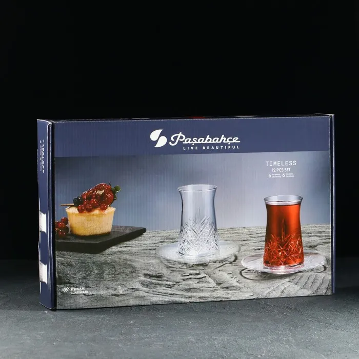 Набор чайный Paşabahçe, 12 предметов: 6 стаканов Армуду 160 мл, 6 блюдец d=12.3 см, стекло, прозрачный — Характеристики