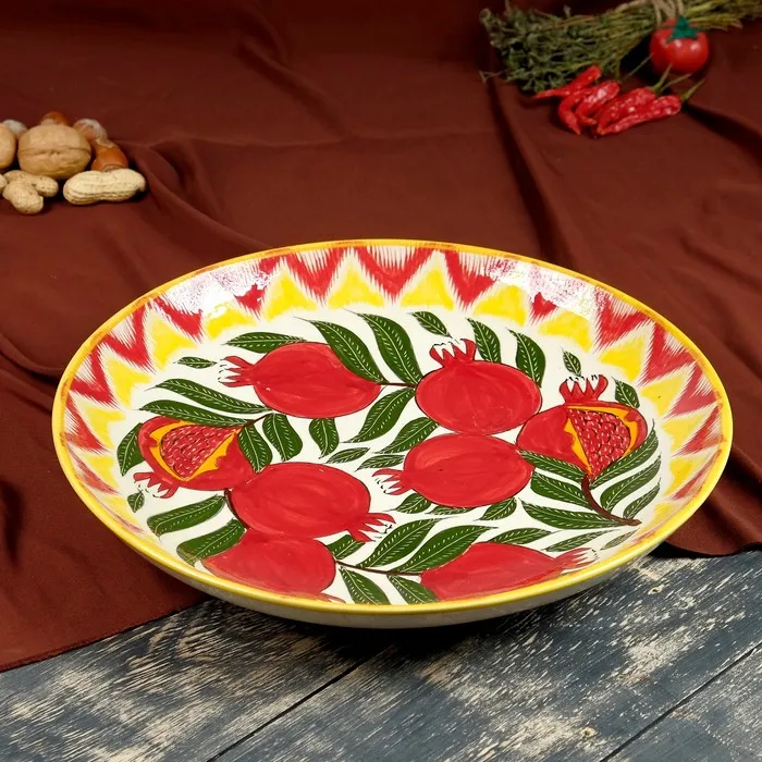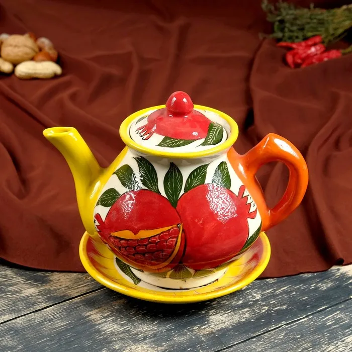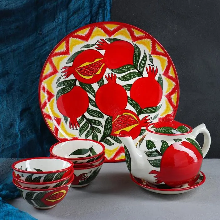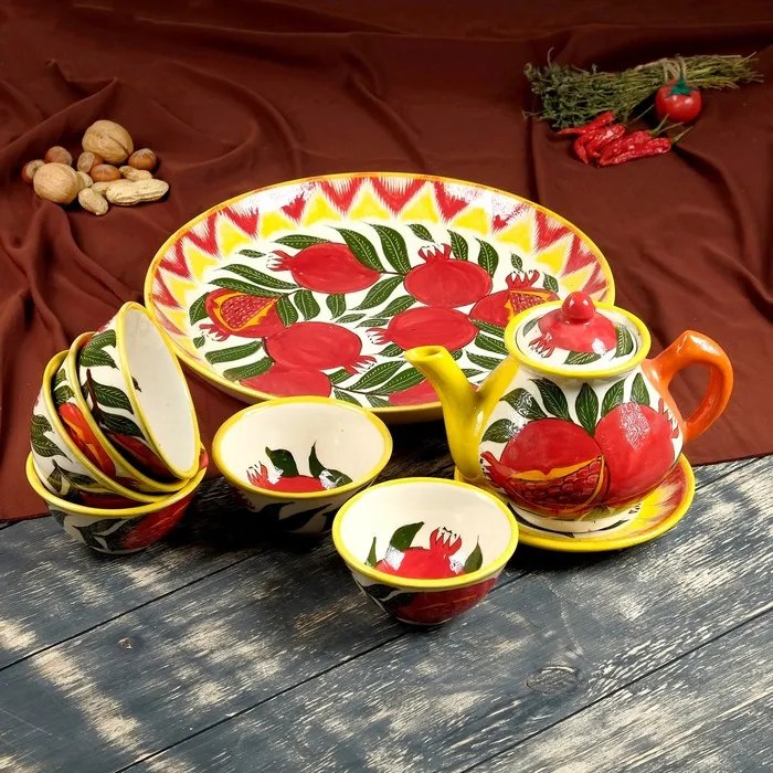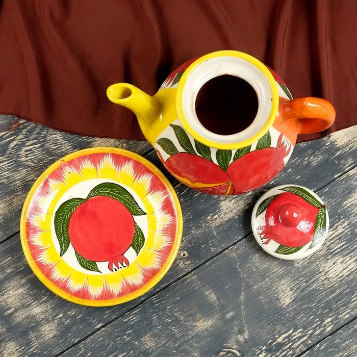 Набор чайный Шафран «Риштанская керамика», 9 предметов: чайник 1 л, пиалы 6 шт. 300-500 мл, ляган, блюдце, жёлтый — Характеристики