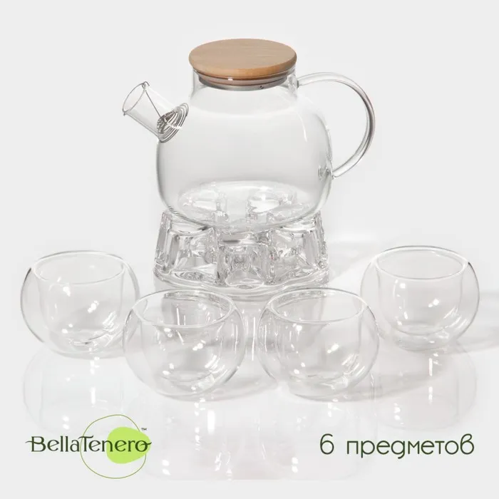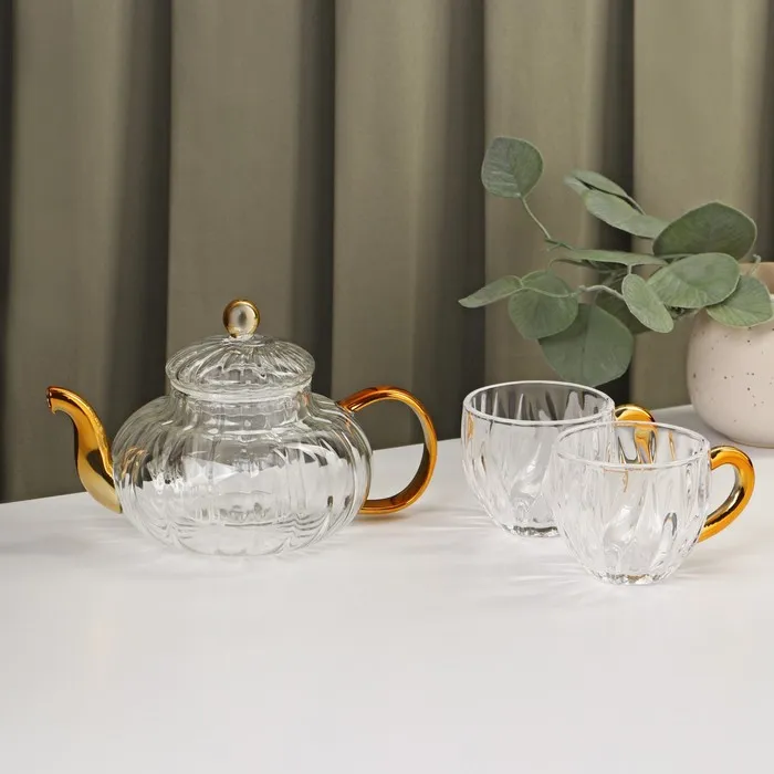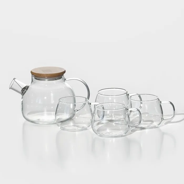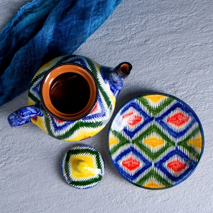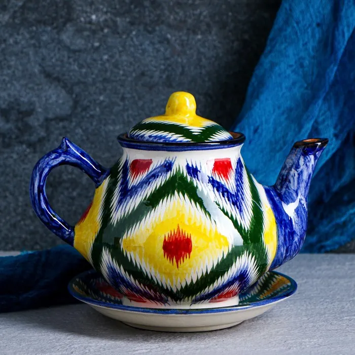 Набор чайный Шафран «Риштанская керамика Атлас №1», 9 предметов: чайник 1 л, пиалы 6 шт. 300 мл, ляган, блюдце, МИКС — Характеристики