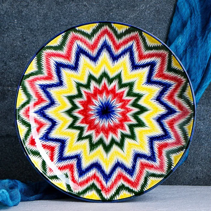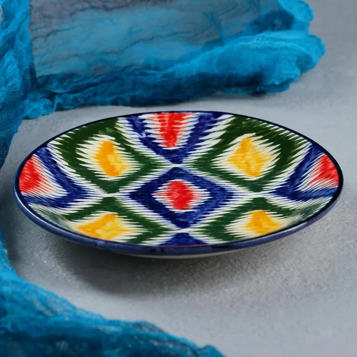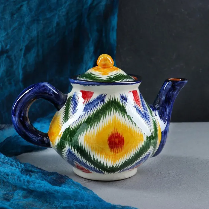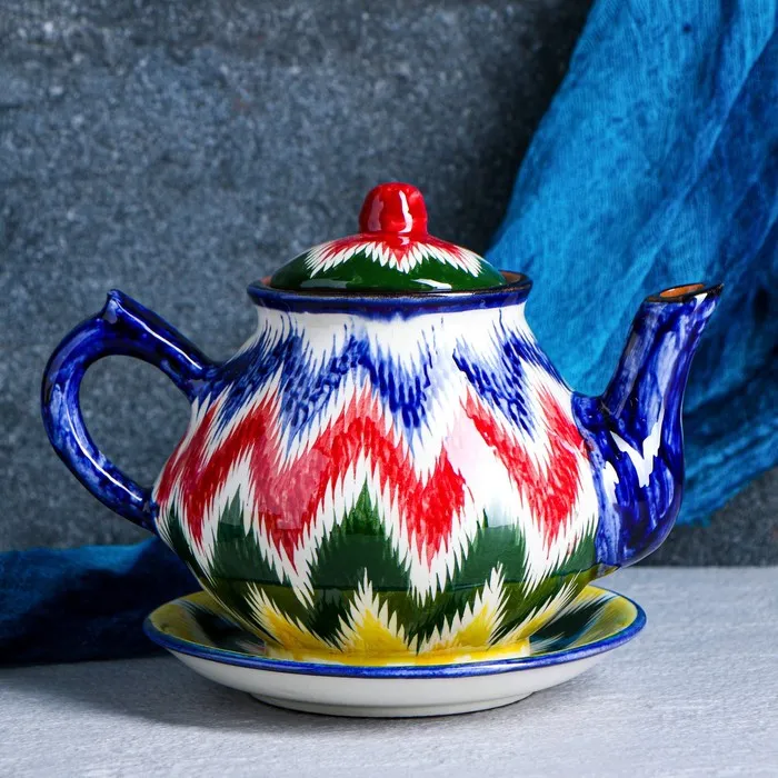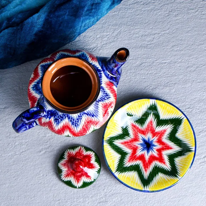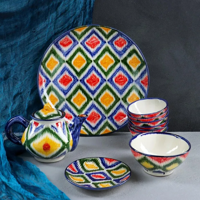 Набор чайный Шафран «Риштанская керамика Атлас №2», 9 предметов: чайник 1 л, пиалы 6 шт. 300 мл, ляган, блюдце, МИКС — Характеристики
