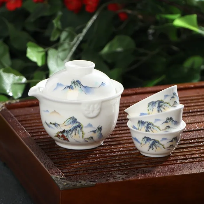 Набор чайный «Восточная мудрость», 4 предмета: 3 пиалы 40 мл, гайвань 240 мл, керамика, белый включает изделия из качественной керамики оригинальной формы, каждое из которых украшено в технике деколь, в восточной манере. Объёмы: