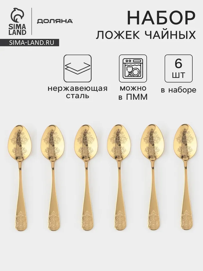 Набор чайных ложек Доляна «Эмили», длина 13.2 см, 6 шт., нержавеющая сталь, золотистый — Характеристики