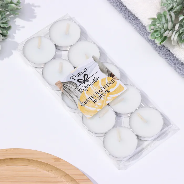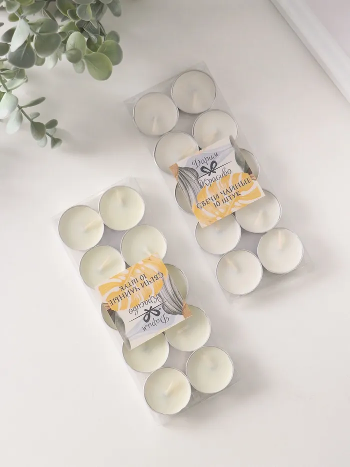 Набор чайных свечей, 10 шт, 6 г, бело-зелеёный