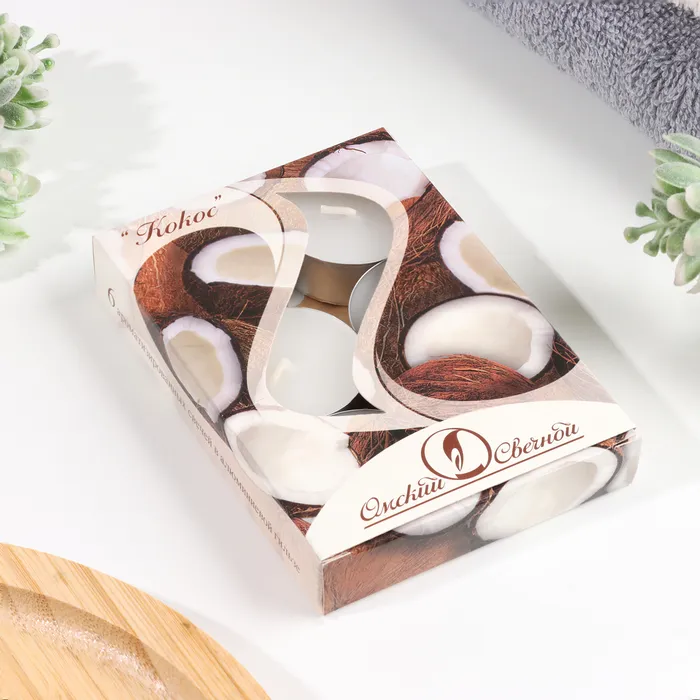 Набор чайных свечей ароматических "Кокос", 3,8х1,6 см, 3,5 ч, 12 г, 6 штук — Характеристики