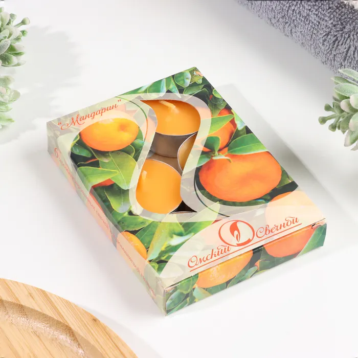 Набор чайных свечей ароматических "Мандарин", 3,8х1,6 см, 3,5 ч, 12 г, 6 штук