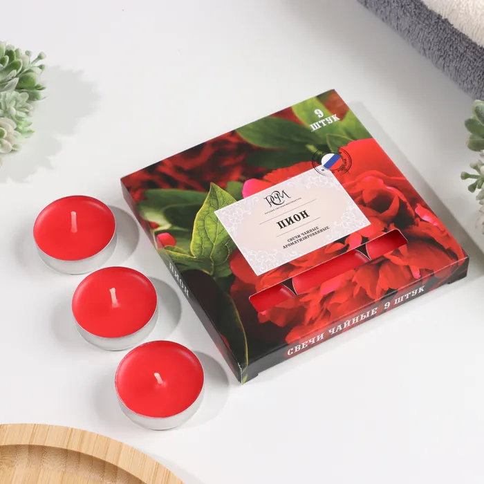 Набор чайных свечей ароматизированных "Пион", 10гр, 9штук