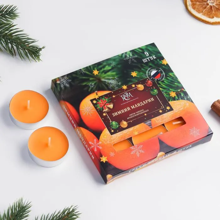 Набор чайных свечей ароматизированных "Зимний мандарин", 10гр, 9штук — Характеристики